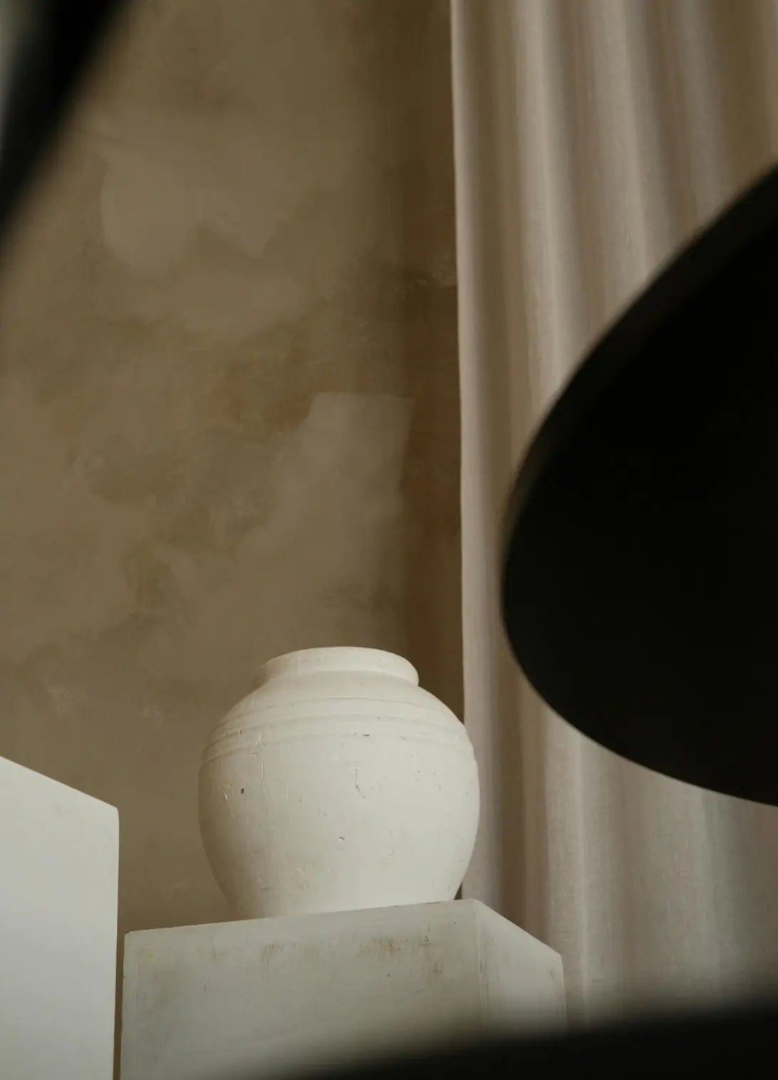 The absence of excessive styling is noticeable. Plants are minimal, bookshelves are not overfilled with relaxing room decor. In addition, the present decorative objects are kept geometric and low-gloss. The room isn’t trying to suggest a lifestyle; it’s built to support it. What the designer achieved here is a quiet, functioning system disguised as a bedroom. And that’s what makes it work. Throughout the process, Sharné provided alternate directions and ideas for the client to consider. One proposal leaned more tonal. Another brought in different light fixtures and a stronger contrast. These variations refined the client’s sense of what a relaxing bedroom design meant to them personally as much as stylistically. Ultimately, the chosen scheme found its strength in grounded accents— oversized artwork, sculptural side tables, and a mix of tactile finishes that feel both current and low-pressure.