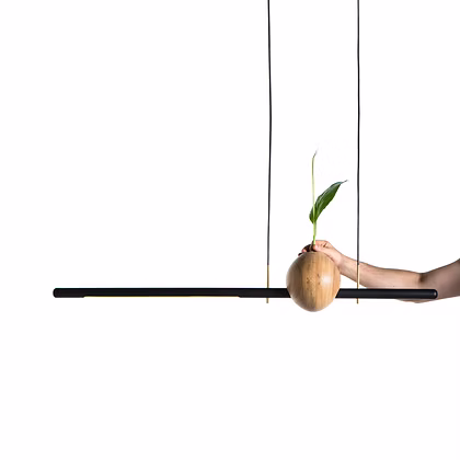 * Dentro da peça torneada em madeira há um cilindro de vidro, permitindo inserir água e retirá-lo quando necessário.