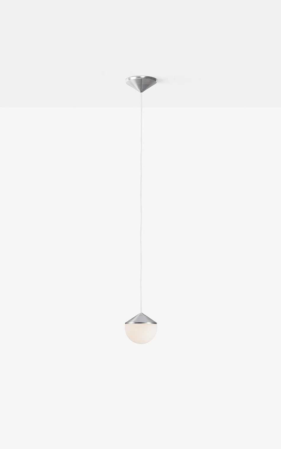 A luminária de mesa Tombo deu origem a sua versão pendente. Feita em metal, vidro soprado e LED integrado, a peça possui um desenho limpo e geométrico para ser usada em qualquer ambiente. A luz difusa e a escala do pendente permitem usá-lo individualmente ou em múltiplos sobre mesas de jantar, laterais de sofá, cabeceiras, bancadas e halls.