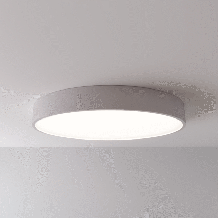 Luminária redonda de sobrepor em alumínio pintado por processo eletrostático e/ou vinílico. Difusor leitoso que permite uma luz difusa e agradável, sem ofuscamento. Possui moldura de acabamento de 20mm. Luminária componível com vários tipo iluminadores.01 2312/120 – Plafon ø1200 (Epóxi)