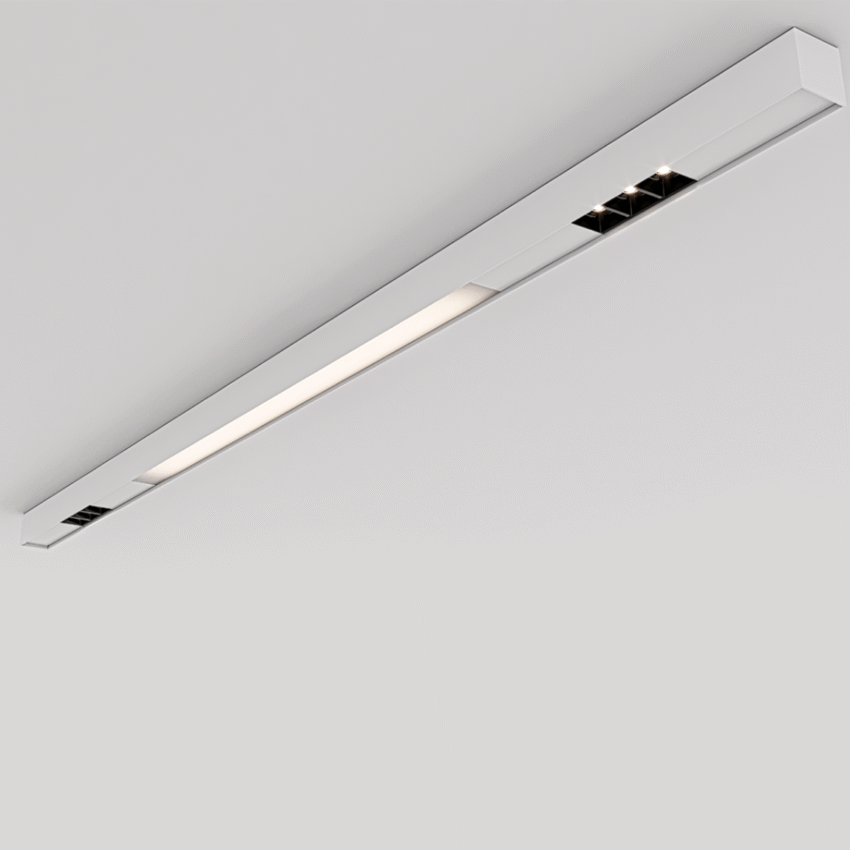Perfil linear de sobrepor plafon, arandela, pendente ou embutido. Feito em alumínio e difusor extrudados, podendo ser composto com diversas soluções óticas. Difusor leitoso com luz agradável sem ofuscamento.